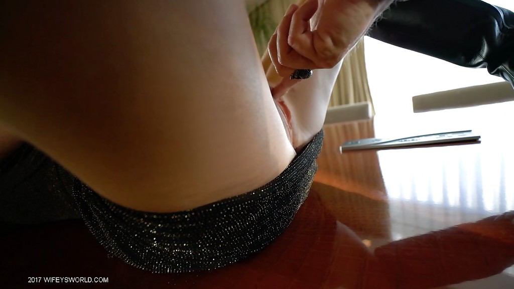 Белокурая домохозяйка Сандра Оттерсон обнажает прелестные ножки в черных сапогах
