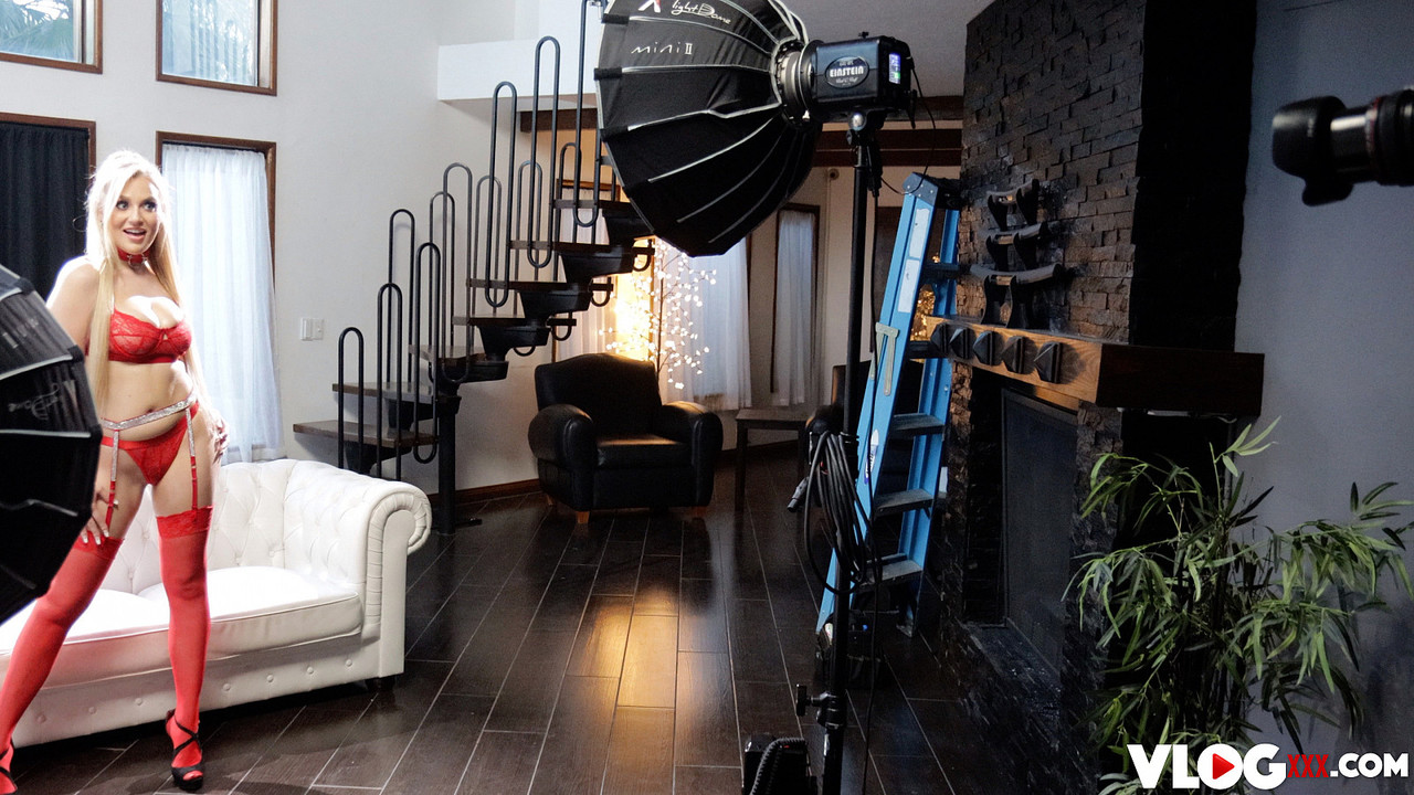 Белокурая модель Блейк Блоссом занимается хардкором во время работы камеры