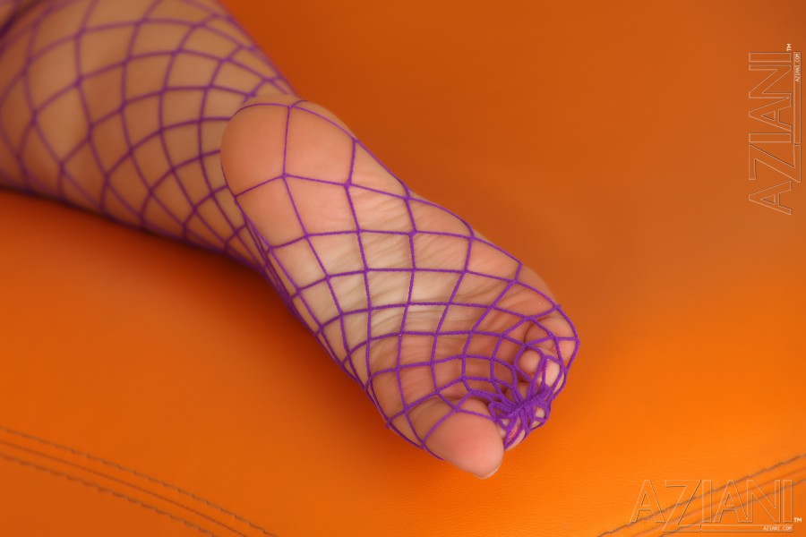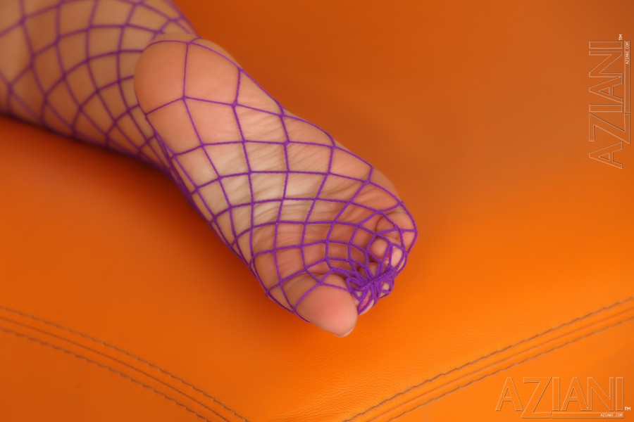 Брюнетка Джейден Джеймс показывает свою пизду в чулках в сеточку