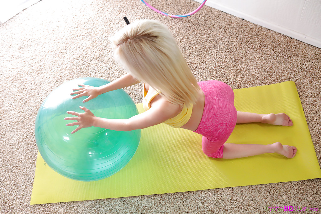 Едва законнорожденная блондинка Пайпер Перри тренируется босиком в спандексе