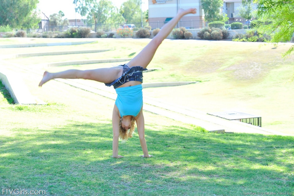 Гибкая блондинка обнажает себя на публике, прежде чем засунуть игрушку в свою пизду
