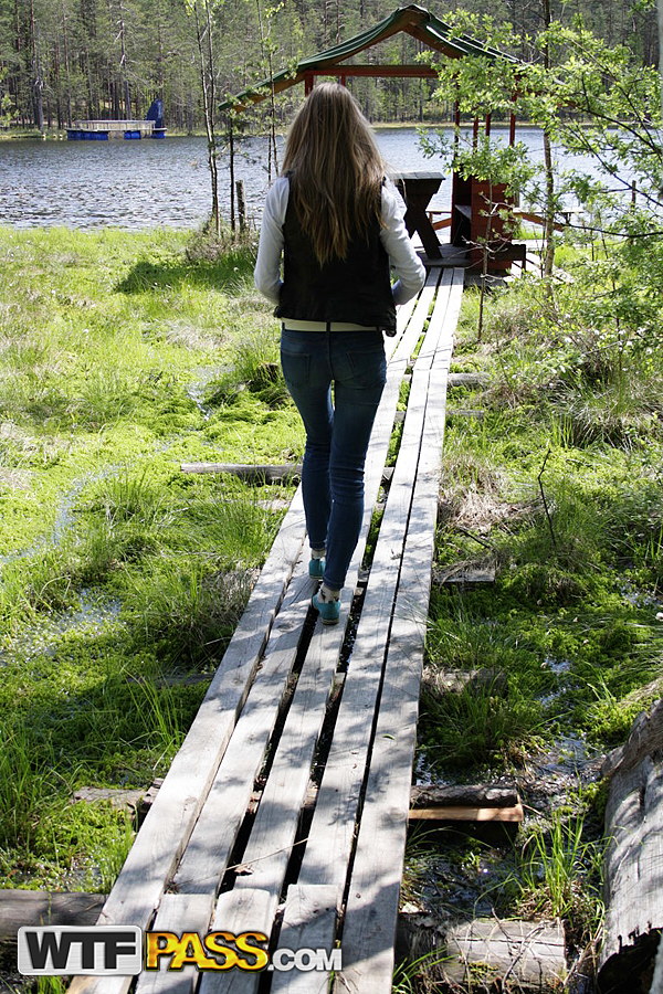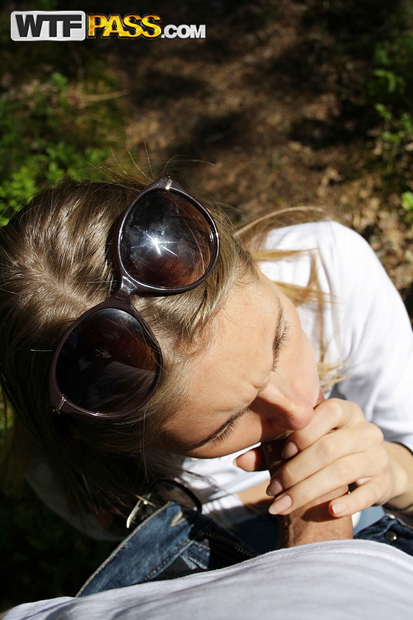 Горячая молоденькая Меган делает минет от первого лица, показывая свои сиськи в загородном коттедже