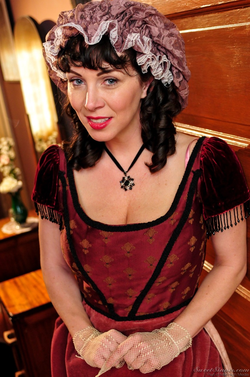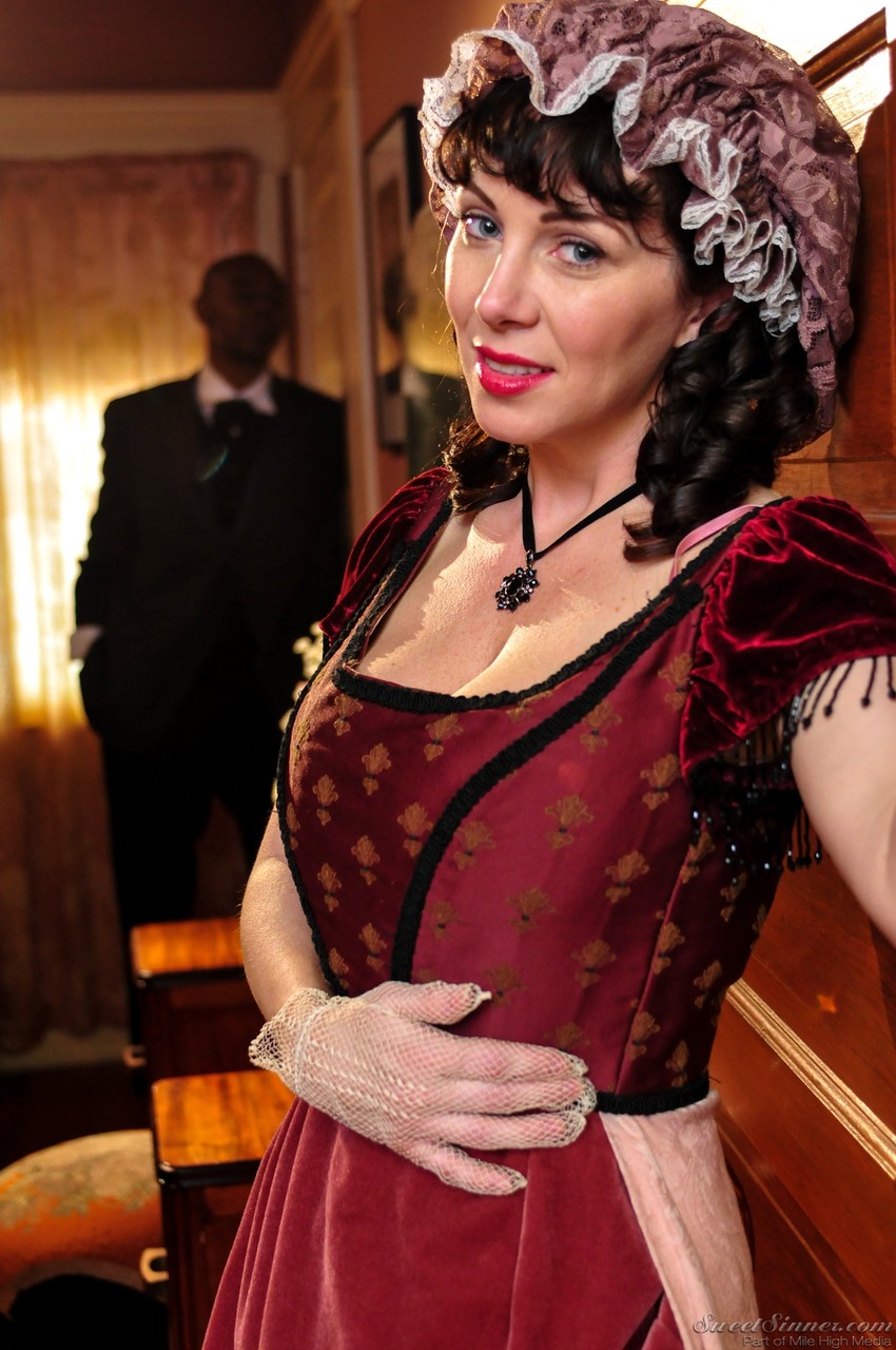 Горячая зрелая брюнетка Рэйвенс демонстрирует сексуальное декольте в средневековом костюме