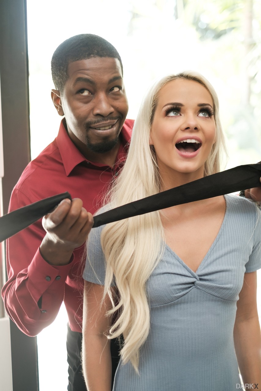 Горячую девушку Эльзу Джин освобождают от повязки на глазах перед ее межрасовым трахом
