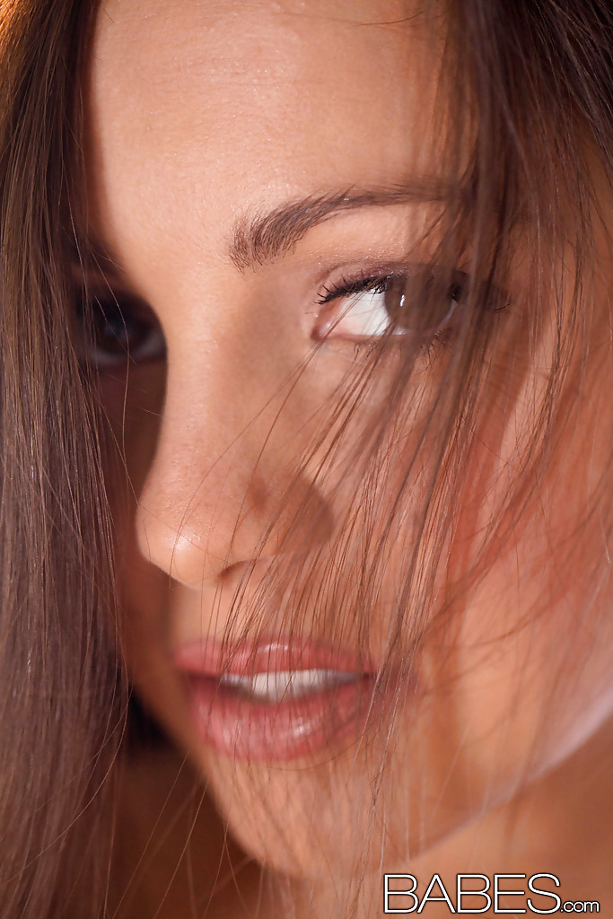 Желанная брюнетка показывает нам крупным планом свои сиськи и горшочек с медом
