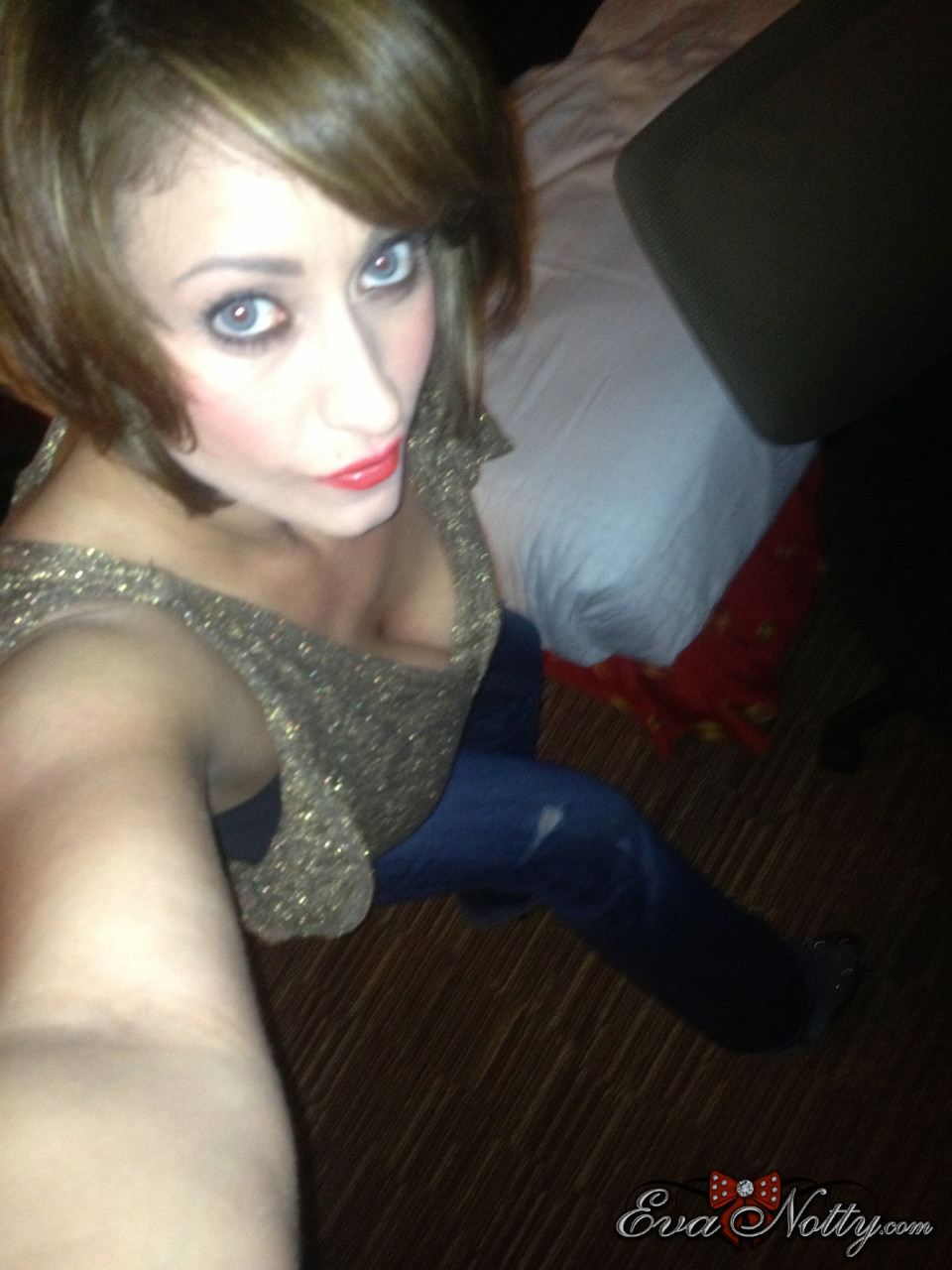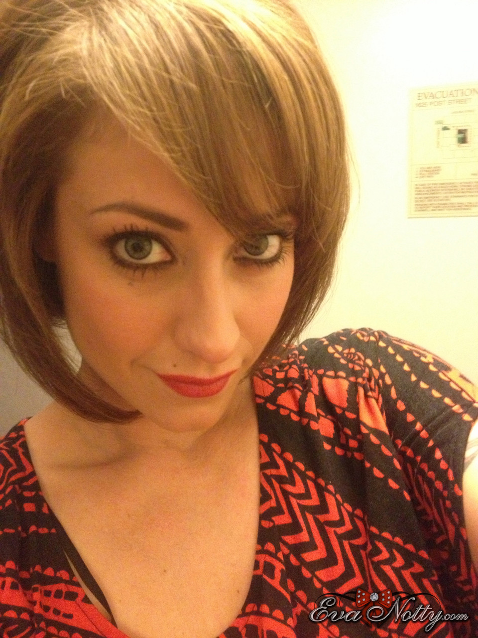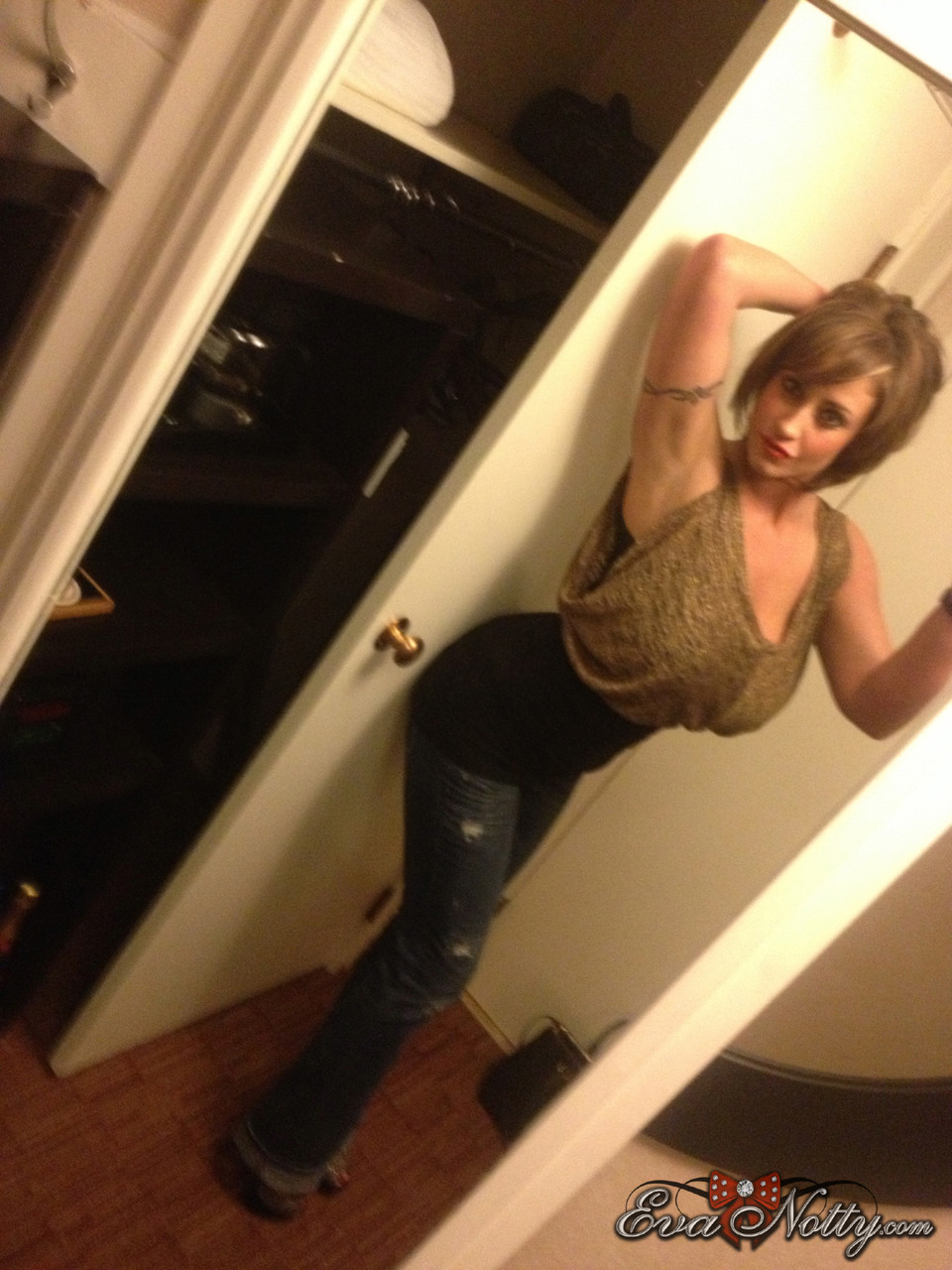 Коротко стриженная цыпочка Ева Нотти обнажает свои гигантские сиськи во время селфи