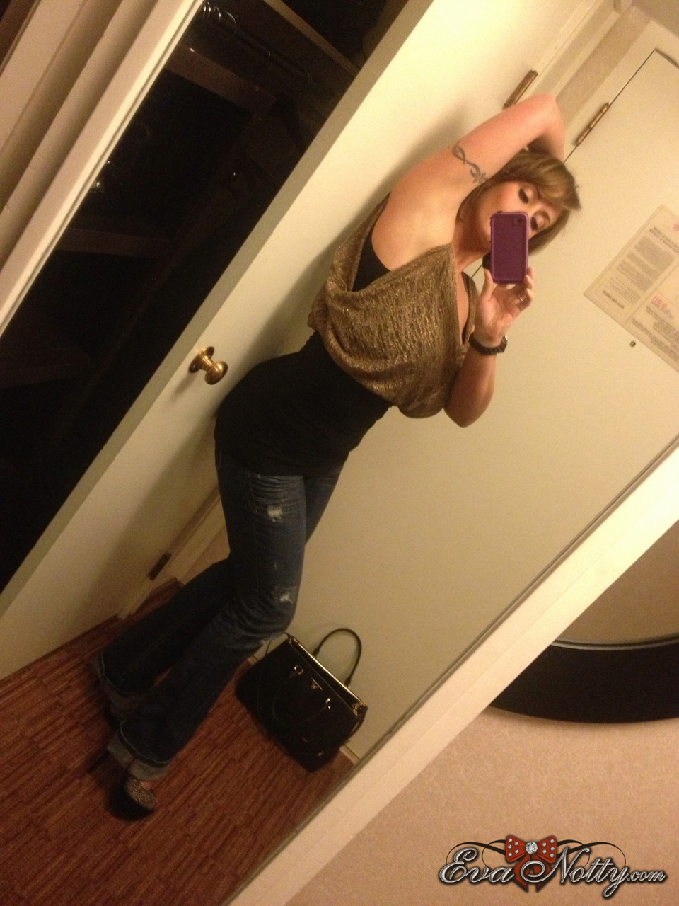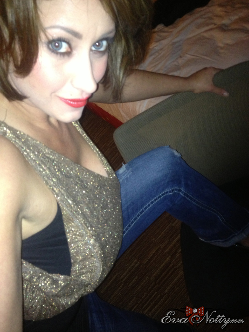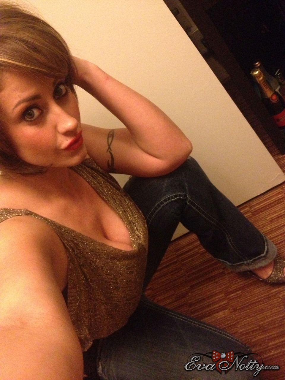 Коротко стриженная цыпочка Ева Нотти обнажает свои гигантские сиськи во время селфи