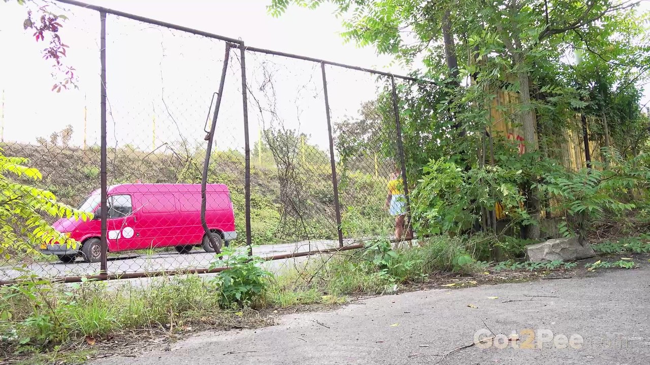 Коротко стриженная девушка Хлоя Ламур крайне нуждается в том, чтобы помочиться на участок тротуара