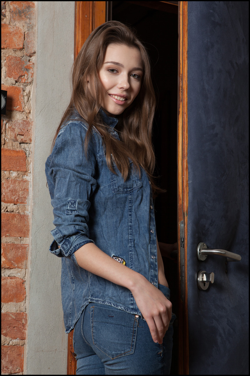 Красивая девушка Мила Азул снимает джинсовую одежду, чтобы позировать в обнаженном виде