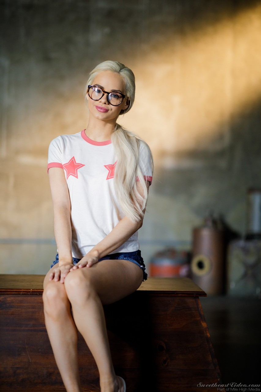 Крошечная блондинка Эльза Джин выставляет напоказ свою шикарную задницу, снимая одежду в очках