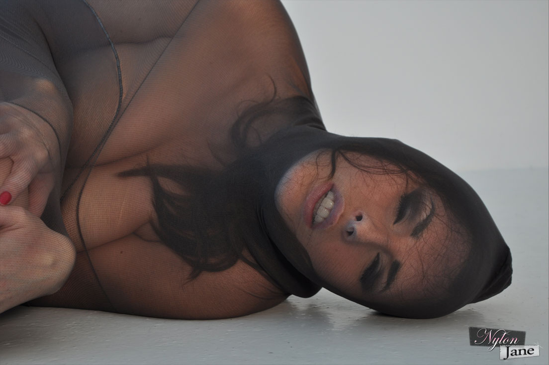 Кудрявая милфа Пейдж Тернах, одетая с головы до ног в колготки, раздвигает киску
