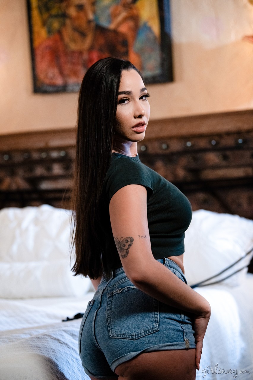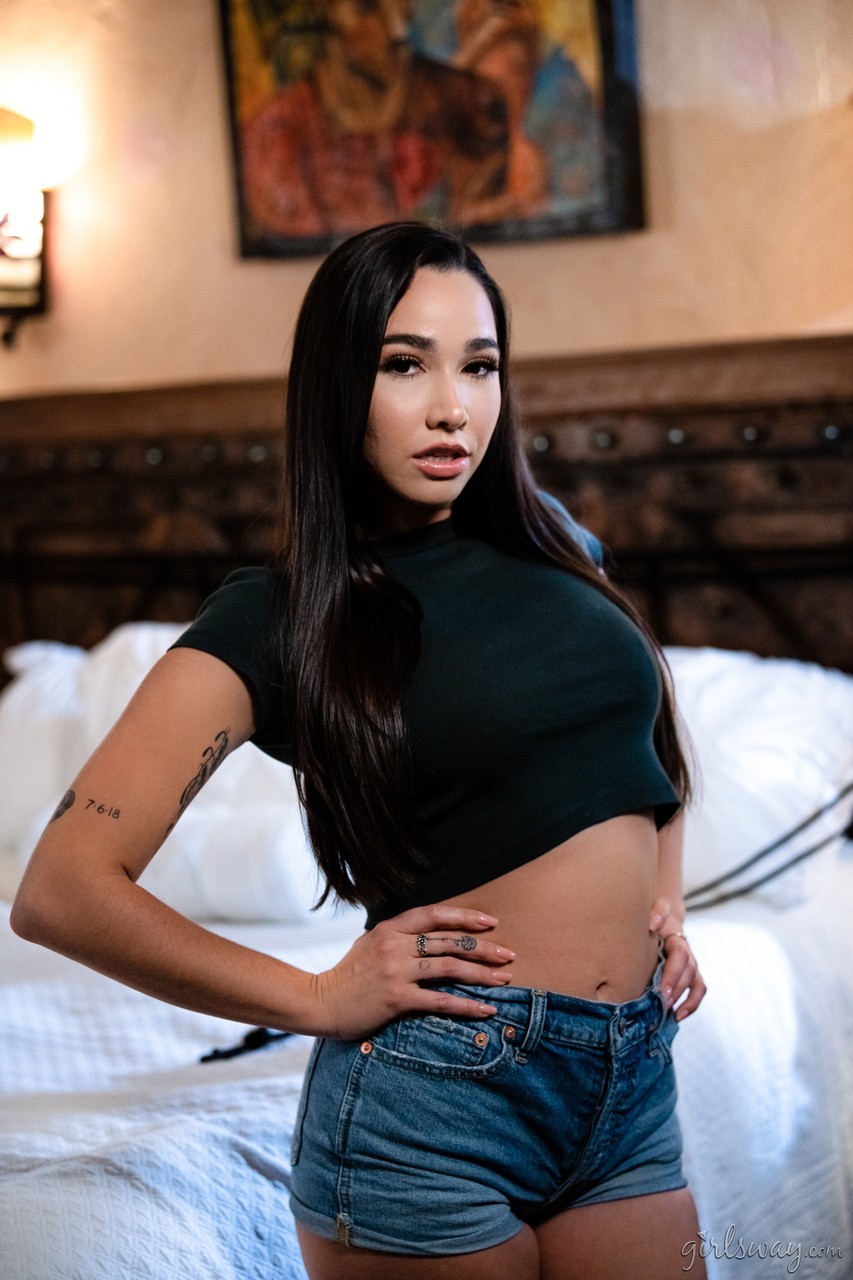 Лена Пол обнажает свои большие сиськи на кровати, в то время как Карли Грей обнажает черный лифчик