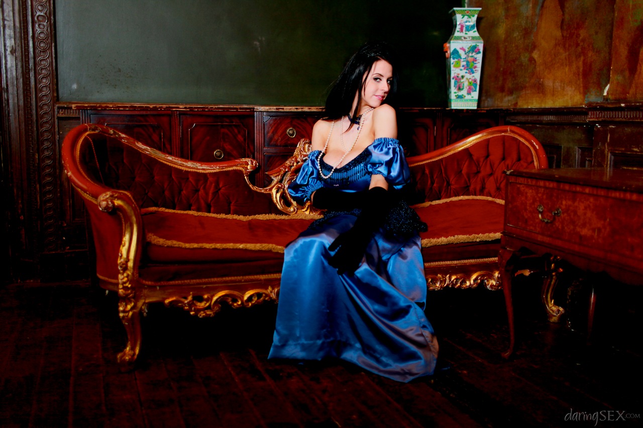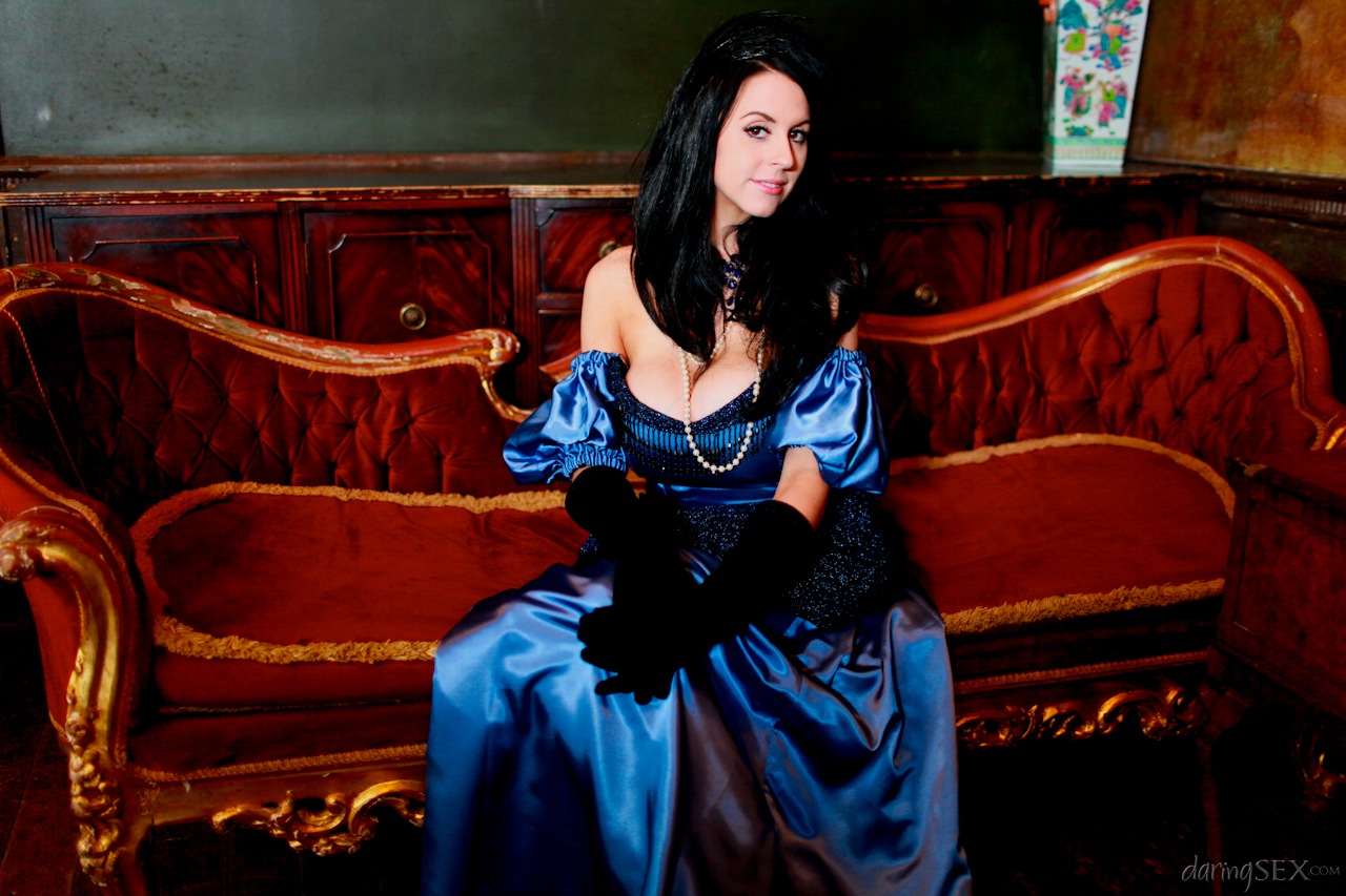 Лесбийские порнозвезды Луиза Дженсон и Пейдж Турнах целуются в старинной одежде