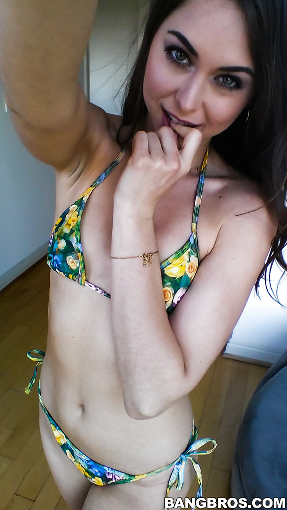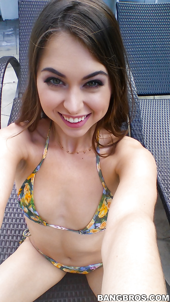 Миниатюрная цыпочка Райли Рид делает селфи nsfw с бритой киской на открытом воздухе