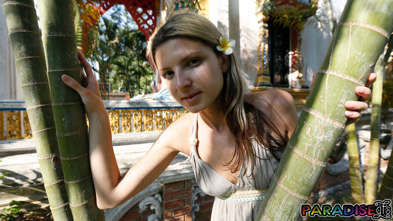 Миниатюрная девушка Джина Герсон мелькает в юбке без трусиков на ступеньках