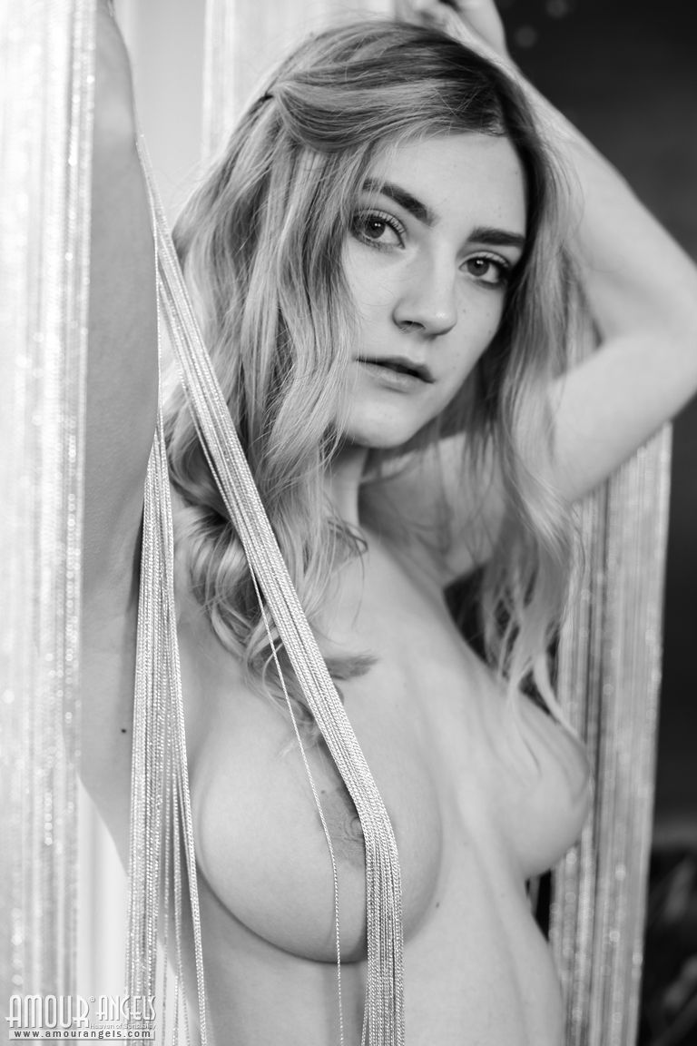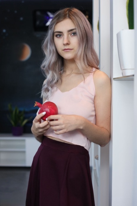 Молоденькая первокурсница обнажает гигантские сиськи, раздеваясь до розовых гольфов