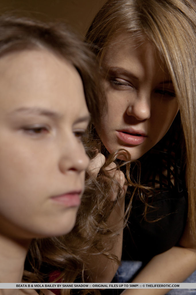 Молодые лесбиянки Беата Би и Виола Бейли занимаются сексом на кровати при плохом освещении