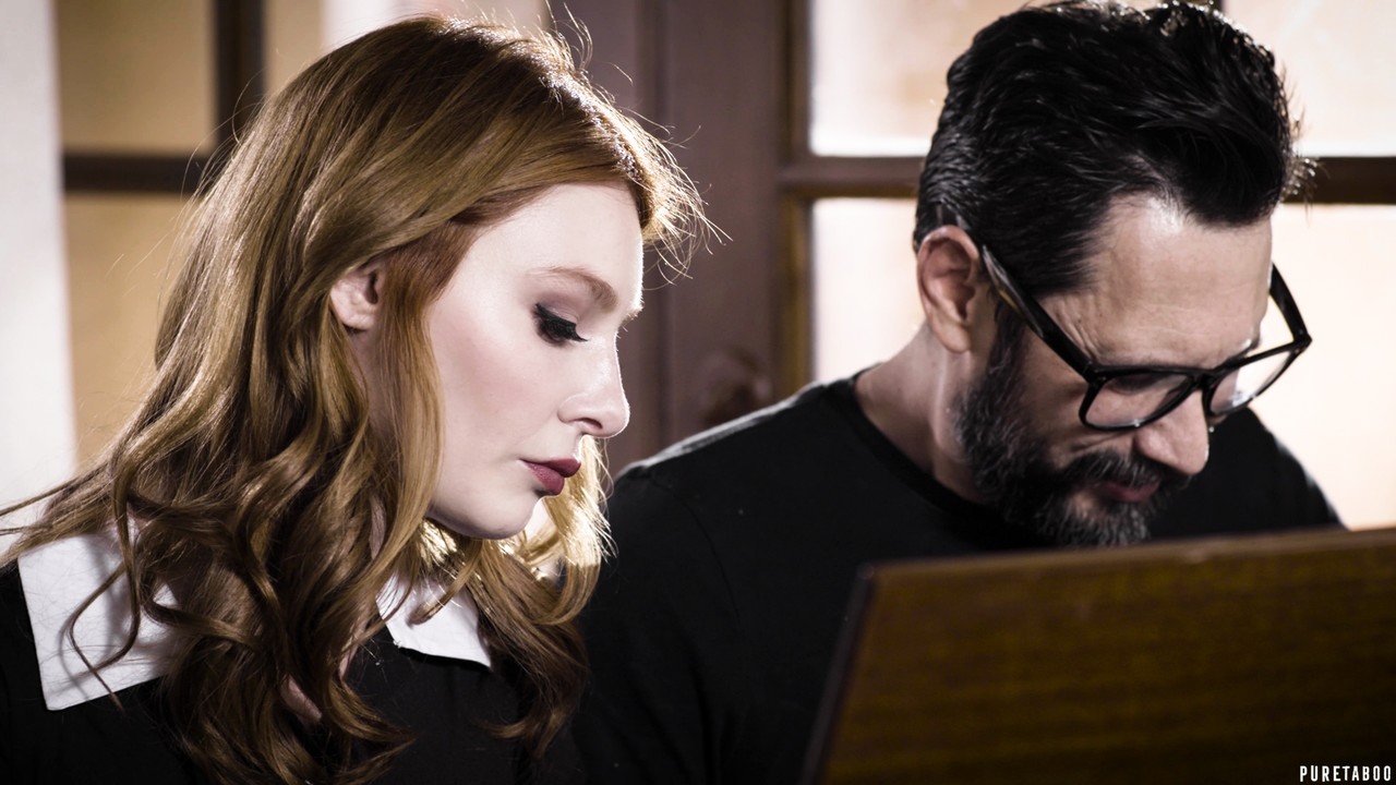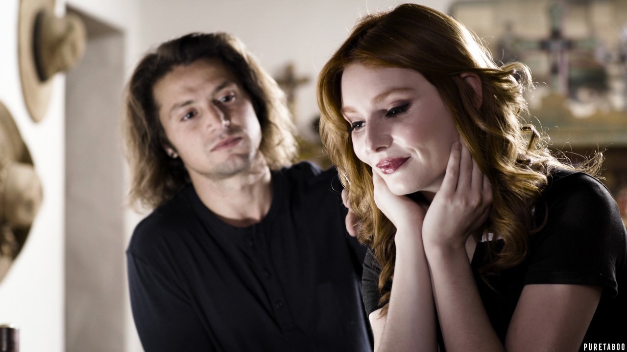 Натуральная рыжеволосая Лейси Леннон занимается сексом на кровати со своей целующейся кузиной