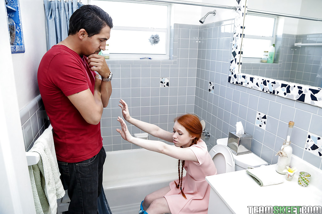 Натуральная рыжеволосая молоденькая Долли Литтл занимается оральным сексом с большим членом над ними с косичками