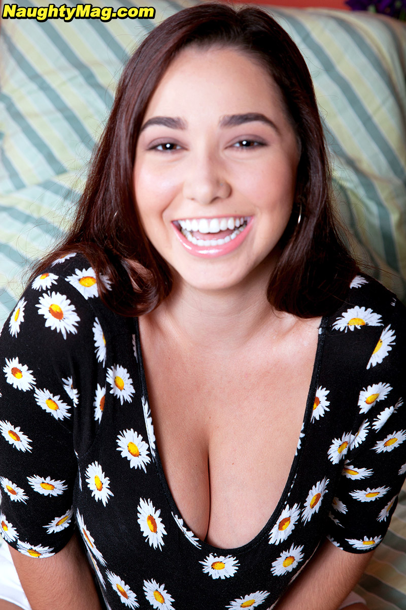 Неопытная Карли Грей отодвигает свои трусики в сторону, сидя на своей кровати