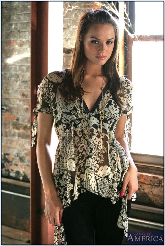 Ослепительная красотка на каблуках Тори Блэк раздевается до трусиков и позирует обнаженной