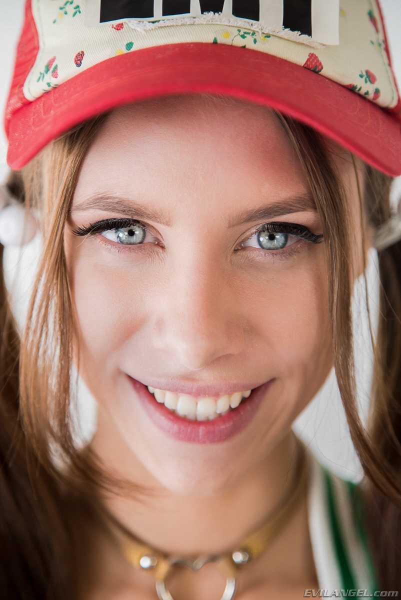 Пышногрудая брюнетка Аня Олсен с косичками сбрасывает шорты, чтобы растянуть горячую попку