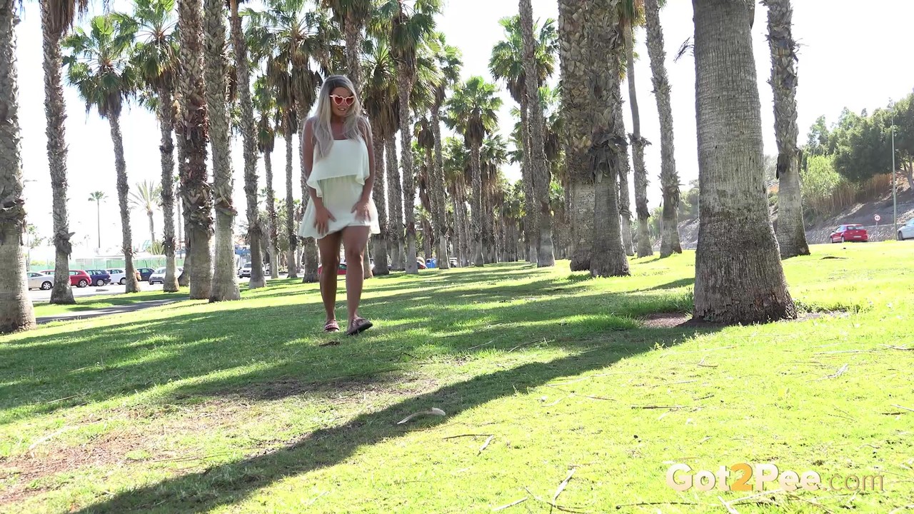Платиновая блондинка Хлоя Ламур мочится на лужайке в солнцезащитных очках