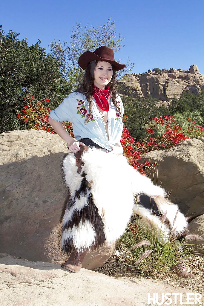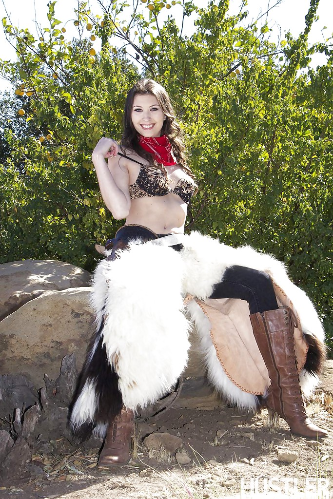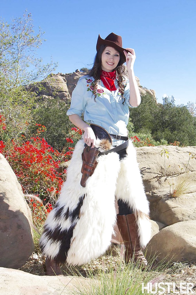 Порнозвезда Луна Стар снимает наряд наездницы, чтобы позировать обнаженной с пистолетом в пустыне