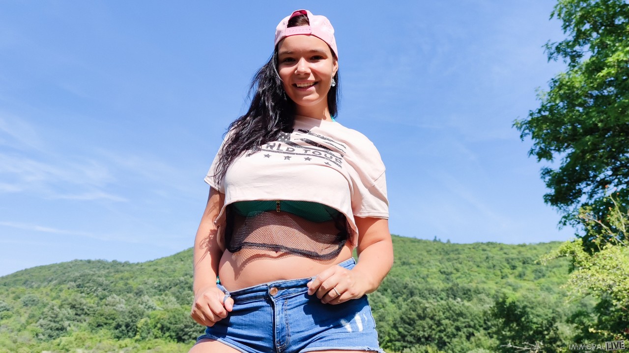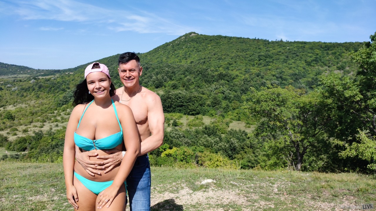 Пухленькая молоденькая София Ли освобождает свои большие натуральные сиськи от бикини на открытом воздухе
