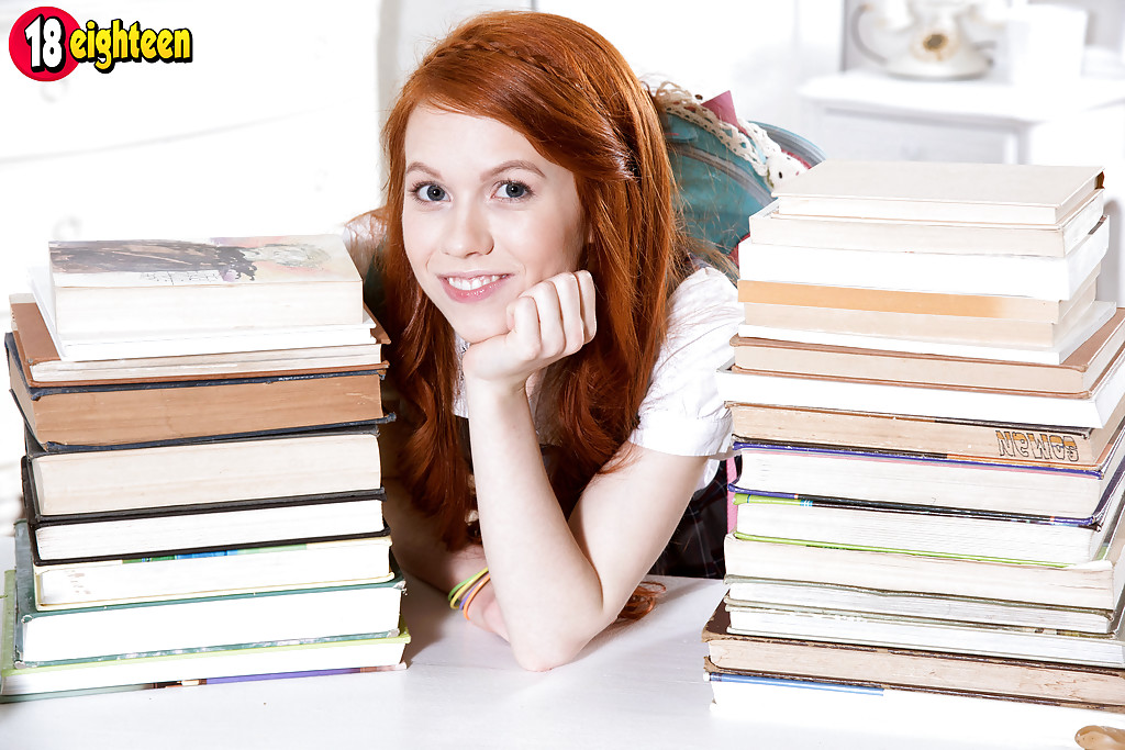 Рыжеволосая молоденькая красотка Долли Литтл сверкает белыми трусиками под юбкой