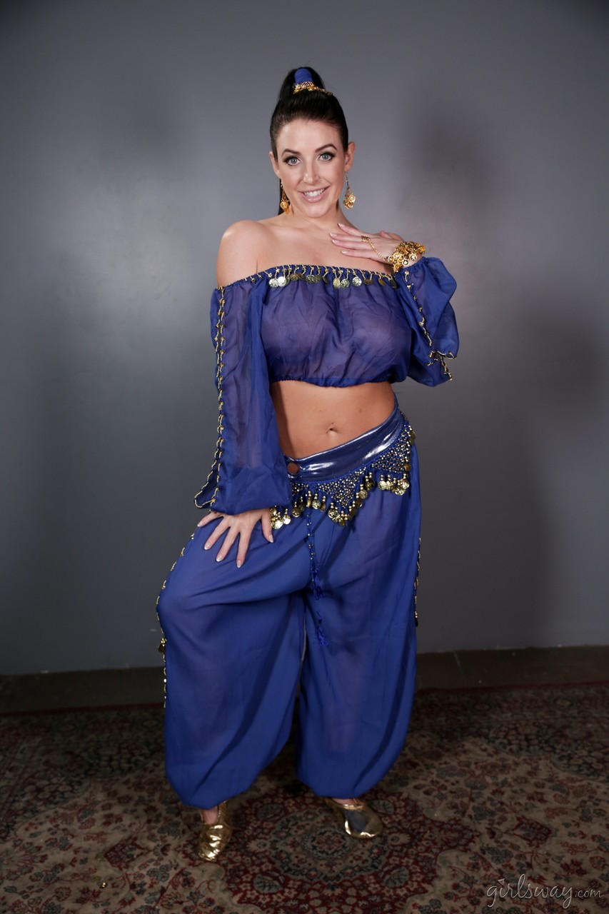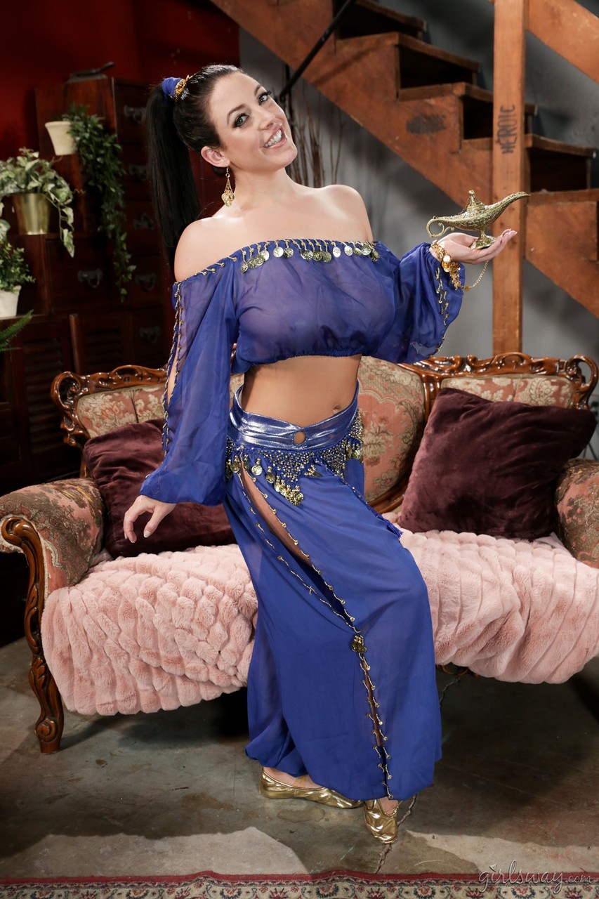 Сексуальная милфа освобождает свои огромные сиськи и шикарную задницу от наряда джинна