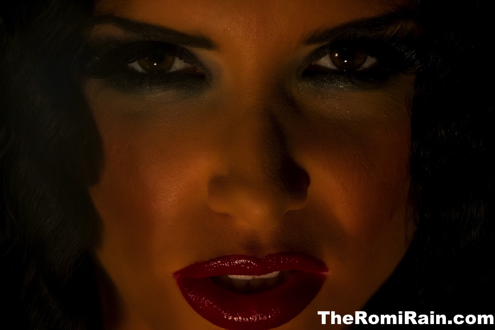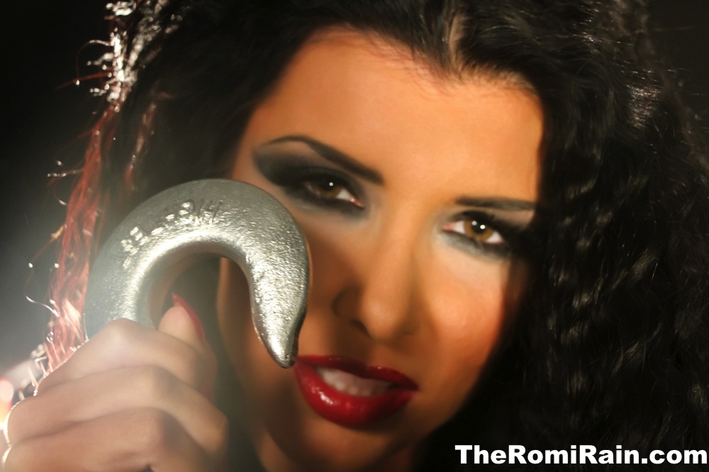 Сексуальная милфа Роми Рейн показывает свои сиськи и киску, закованная в цепи