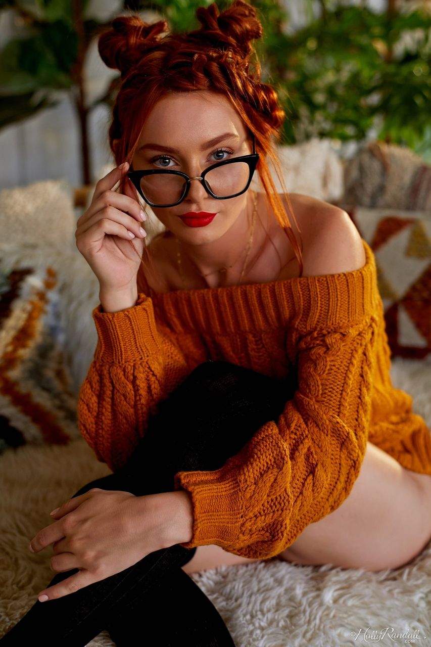 Сексуальная рыжеволосая Лейси Леннон выгибает спину, обнаженная в черных носках OTK