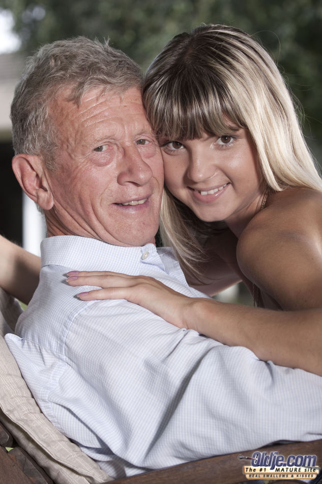 Симпатичная девочка-подросток и ее седовласый папочка обмениваются оральным сексом во дворе