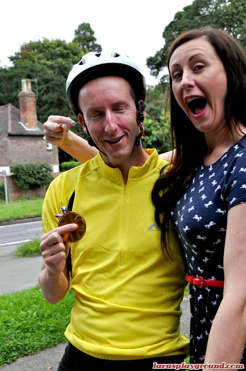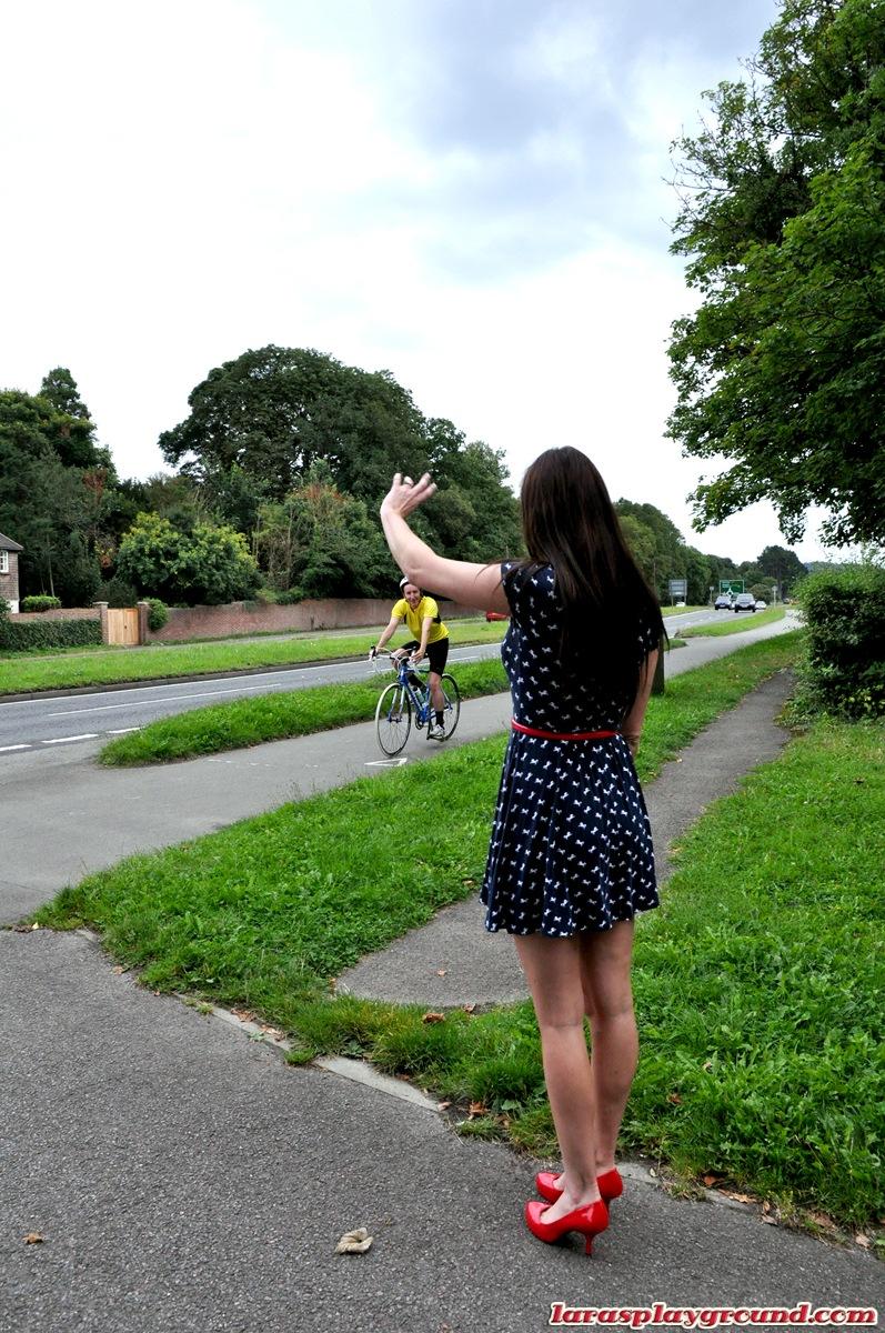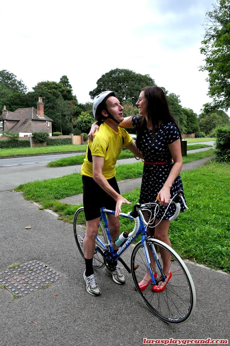 Старая шлюха на каблуках и в балетной пачке соблазняет велосипедного курьера полизать ее стареющую задницу