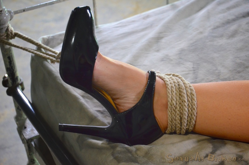 Связанную самку Сирен де Мер трахают в рот белые и черные члены